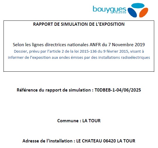 ANTENNE 4G A LA TOUR : RAPPORT DE SIMULATION DE L’EXPOSITION