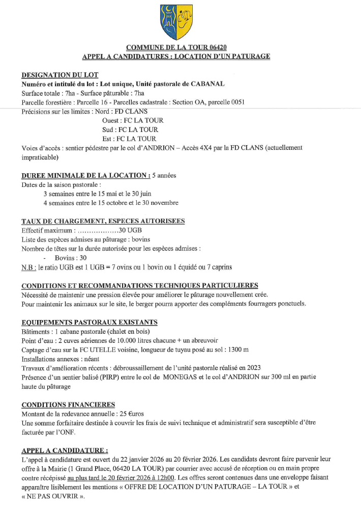APPEL A CANDIDATURES : LOCATION D’UN PATURAGE