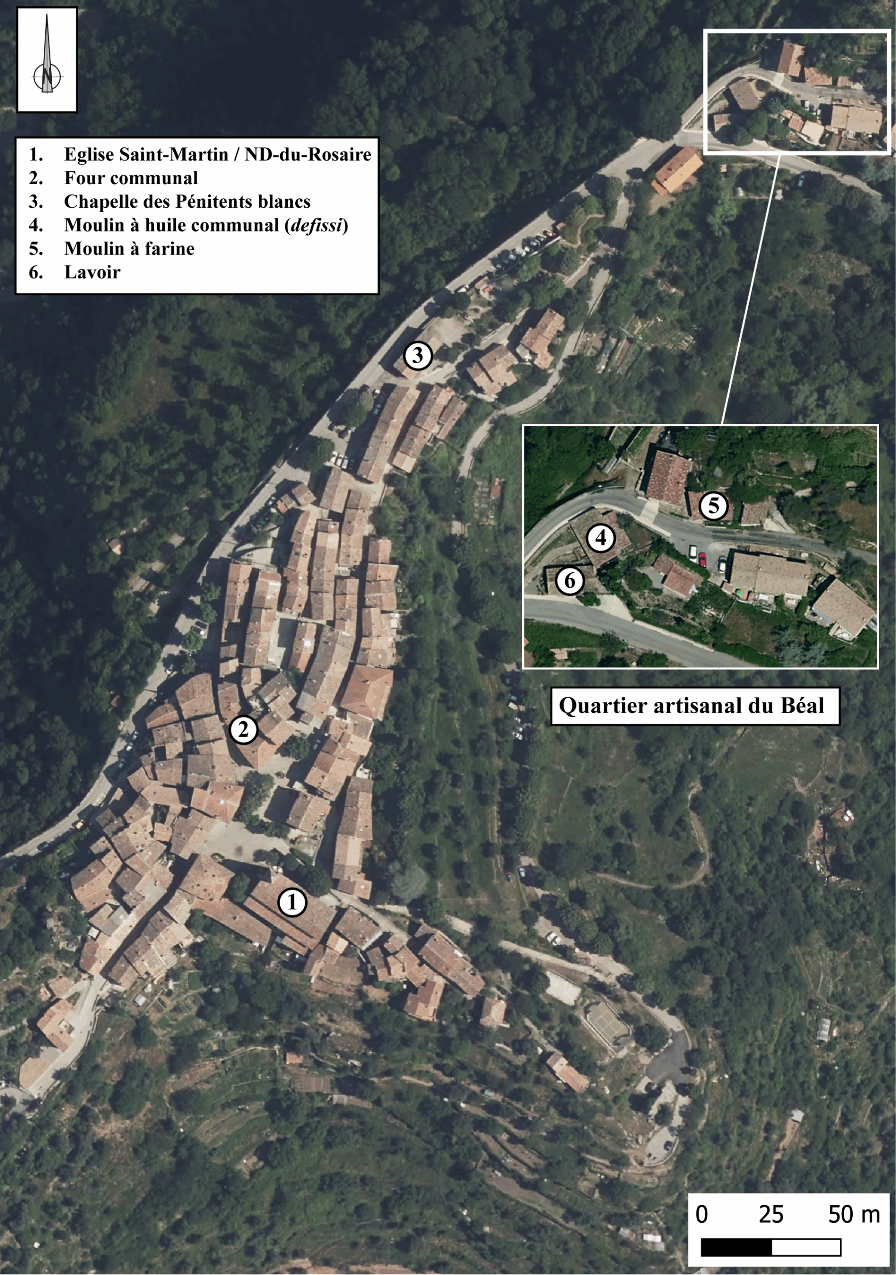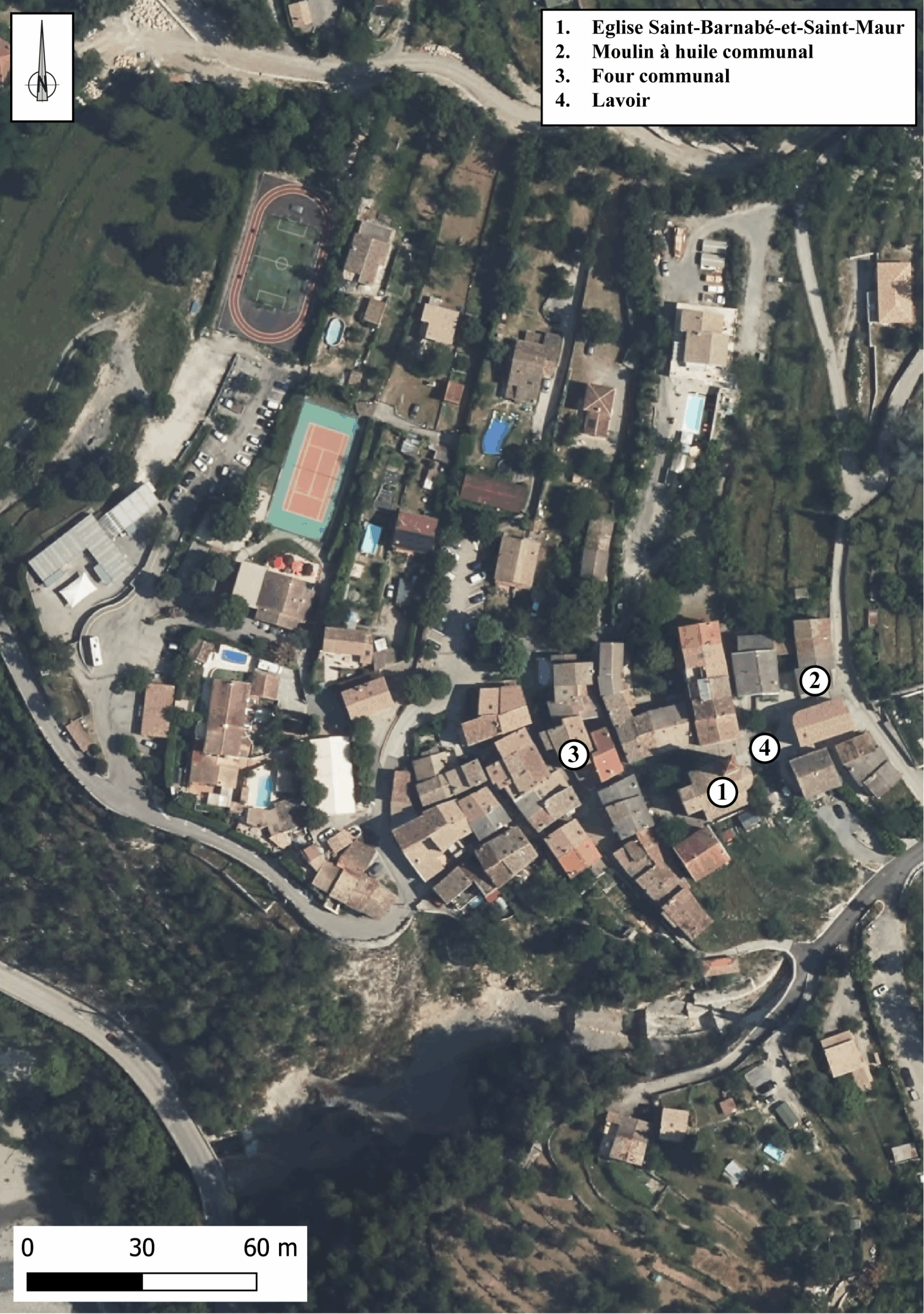 Fig. 1.2. Vue aérienne du village de La Tour (élaboration R. Mercurin, fond de carte SIGNCA 2023 / © MNCA).