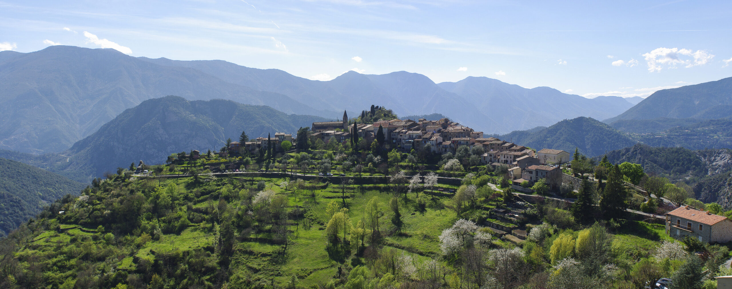La commune comporte aujourd’hui deux agglomérations. La Tour (fig. 1.2 et 1.3), chef-lieu de commune et centre historique, correspond à un village perché à plus de 600 m d’altitude sur un double éperon rocheux dominé par le Montjoie (alt. 921 m). Roussillon (fig. 1.4 et 1.5), dont le développement est plus récent, occupe quant à lui, en fond de vallée (alt. 334 m), un pied de versant et surplombe directement le cours de la Tinée.