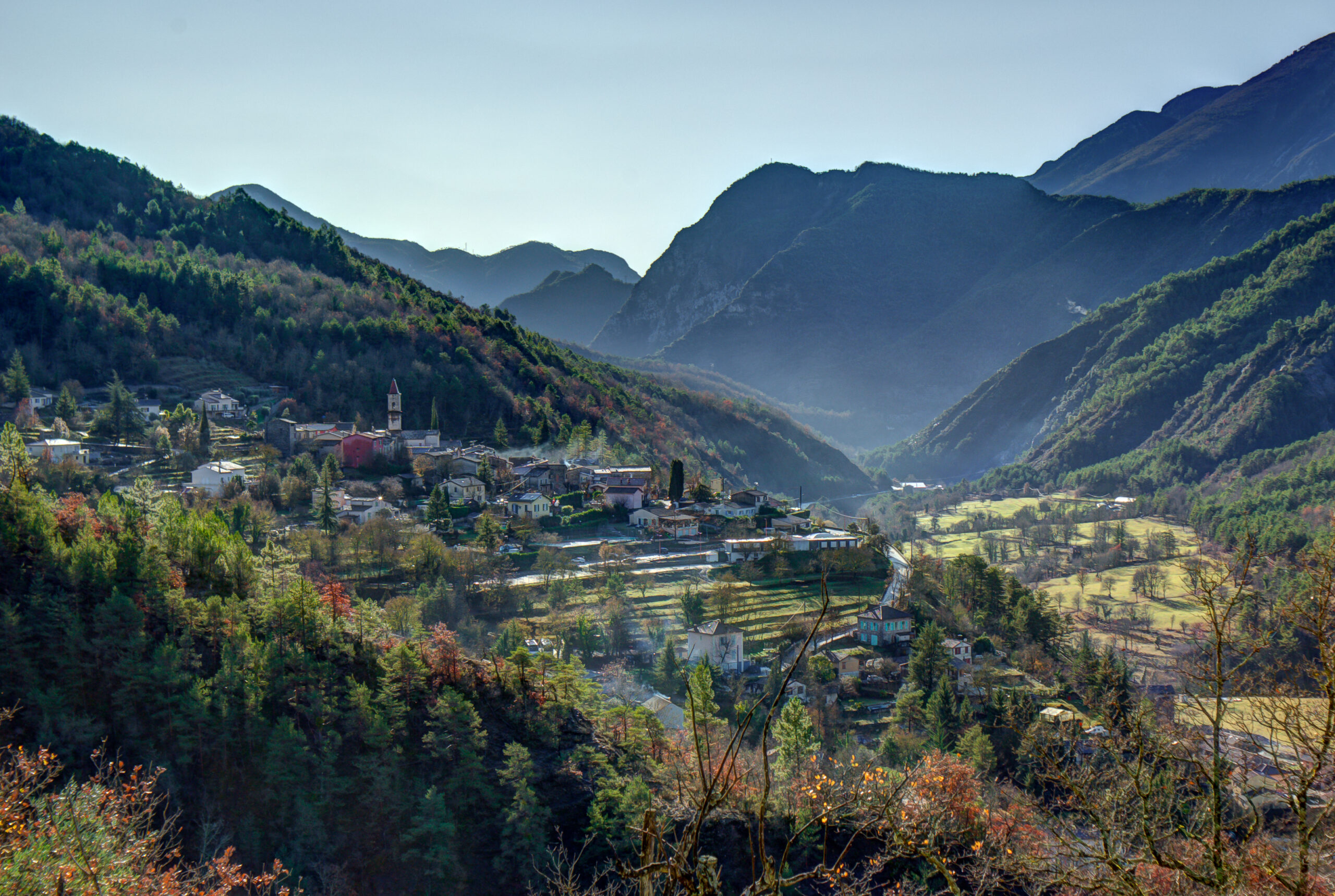 La commune de La Tour-sur-Tinée (3670 ha) est située dans la basse vallée de la Tinée, sur la rive gauche de la rivière, à l’entrée des gorges de La Mescla (fig. 1.1). Elle occupe la partie sud-ouest de l’interfluve Vésubie-Tinée, sur les contreforts sud du massif du Tournairet. Bordée à l’ouest par la rivière, elle est dominée à l’est par le Brec d’Utelle (1602 m d’alt.) et la Cime de Bellegarde (1564 m), au nord par la Tête de Cabanal, point culminant de la commune (1902 m), et au nord-ouest par le mont Mangiarde (1623 m). Trois vallons principaux, se jetant dans la Tinée, compartimentent le territoire : le vallon de Mangiarde / Ginoire à l’ouest, le vallon de Saint-Jean / Cramassouri, au centre, et celui des Carbonnières au sud-est.