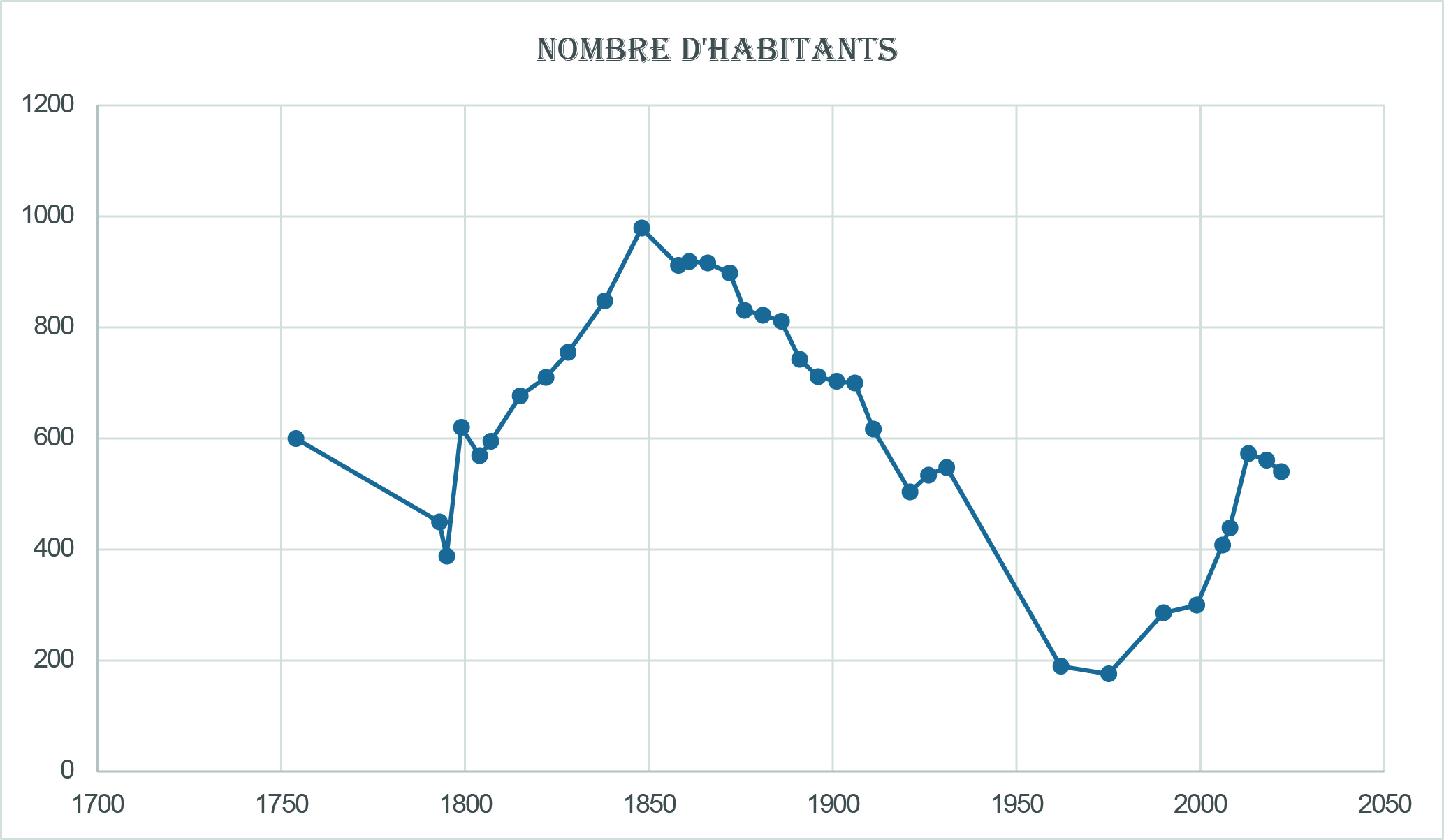 Fig. 1.6. Recensement de la population de La Tour de 1750 à nos jours.