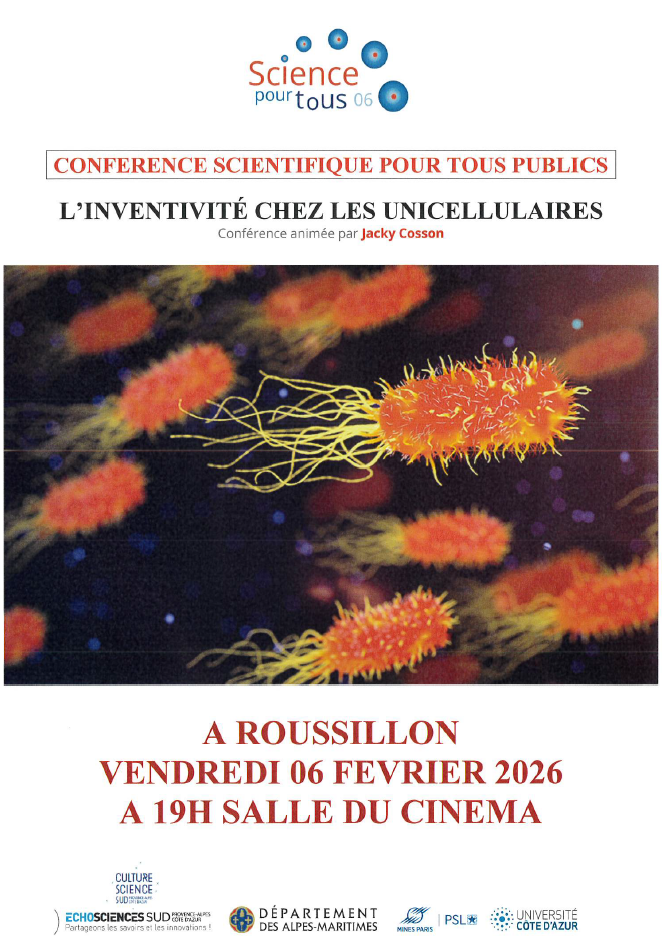 Salle de cinéma – 06/02 à 19h – Conférence sur « l’inventivité chez les unicellulaires »